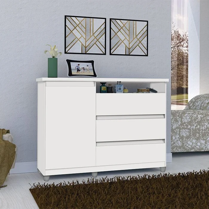 Agora, você pode organizar as suas roupas e sapatos com um único móvel: a cômoda Ski. Ele foi desenvolvida com espaço lateral que possui divisória interna, assim, você pode acomodar os seus sapatos de forma organizada e prática. Charmosa, seus puxadores estão embutidos na gaveta, na parte inferior, deixanco a cômoda clean e sofisticada. Além disso, as gavetas suportam até 07 kg, dando a você, segurança e durabalidade para acomodar suas roupas. Perfeita, né?